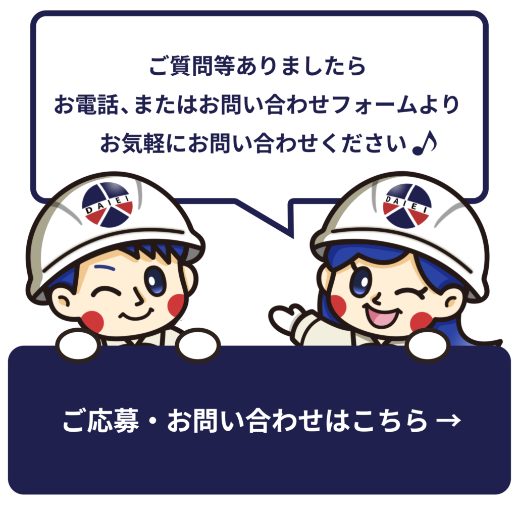 大栄興業株式会社では、建設現場で共に働く仲間を随時募集しています。未経験の方でも、技術を身につけられる環境を整えています。
